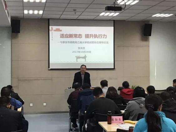 日前,由江南大学EDP中心举办的系列企业定制课程培训班陆续开班。10月30日—11月3日,泰安市地税局江南大学培训班(第一期)在商学院正式开班。泰安市地税局党组副书记、副局长张鲁光,泰安市地税局副调研员闫加胜,江南大学商学院院长助理任华亮副教授出席开班仪式。来自泰安市地税局64位领导参加了此次培训。